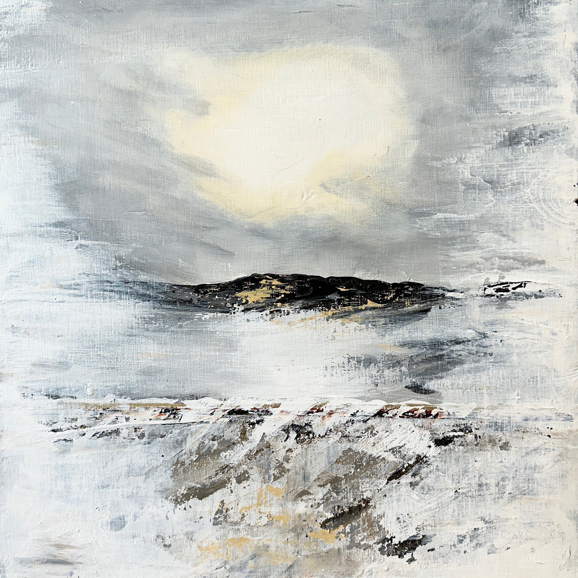 Målad med Akryl på träpannå. Monterad i en gråsvart ram och färdig att hängas på väggen som den är om du vill.