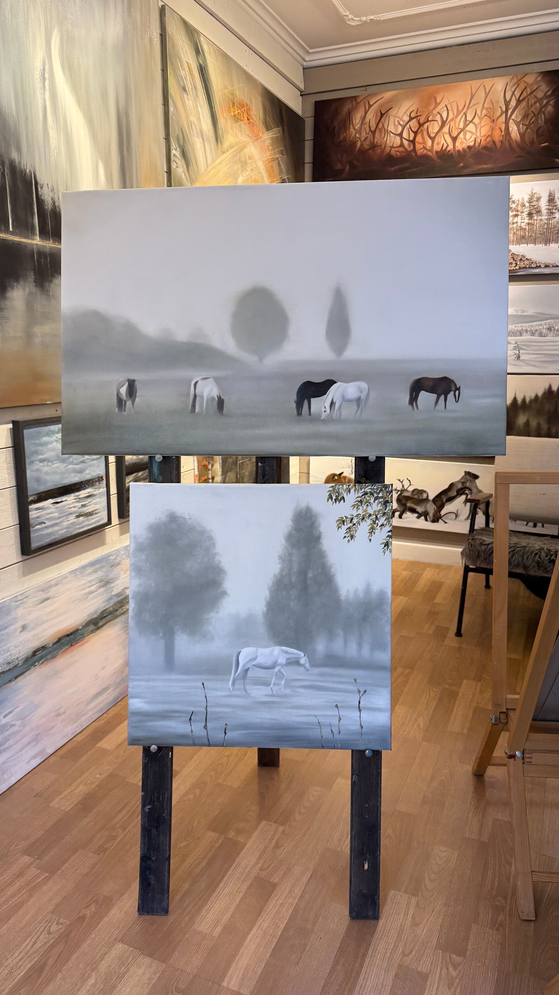 Målad med oljefärg på medelgrov kanvasduk. Monterad på kilram och färdig att hängas på väggen som den är om du vill.