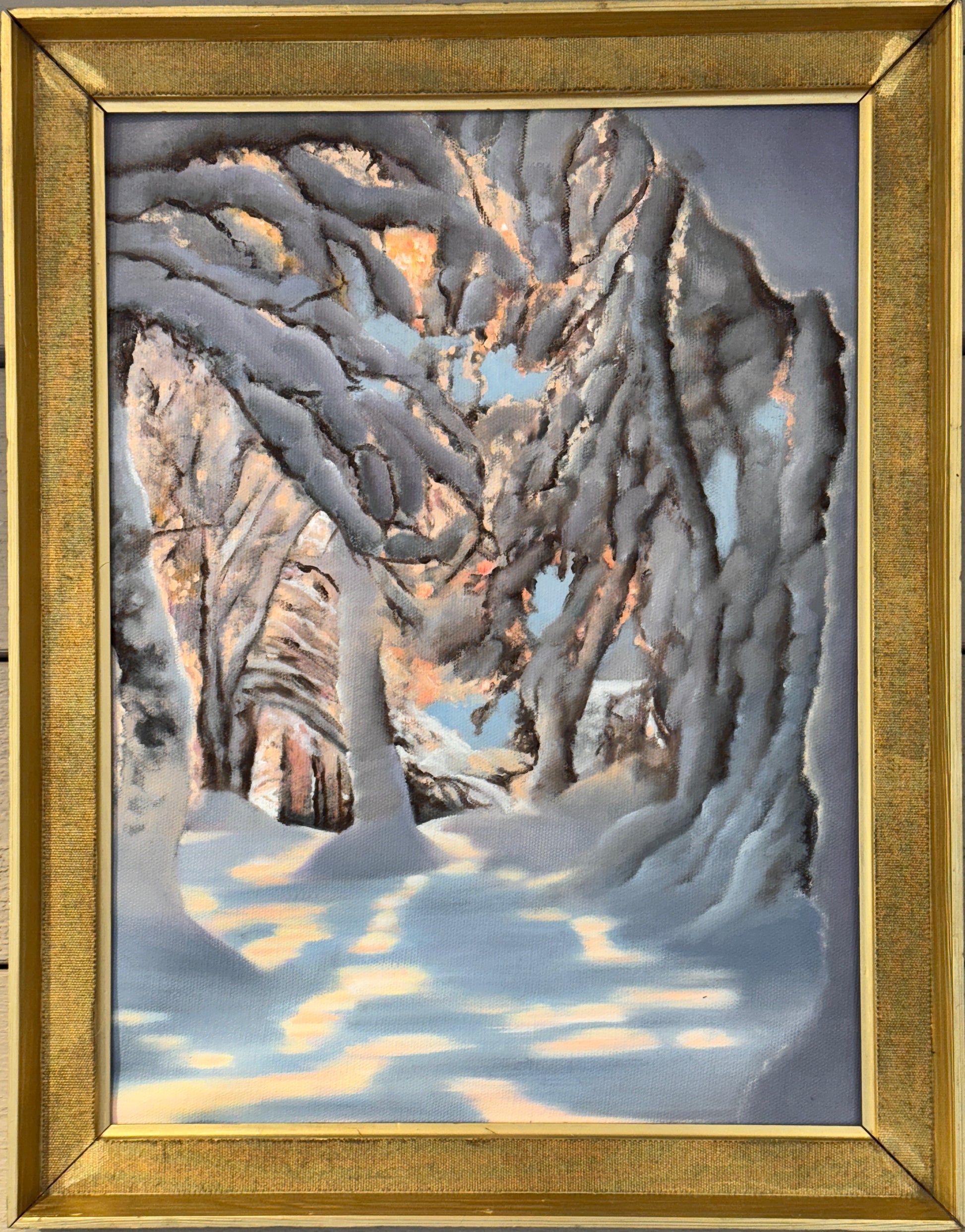Jag fyndade ramen på loppis - spraymålade den i guld och målade ett ”Vinterljus”. Kallar det för ”recycling art GOLDEN edition”.