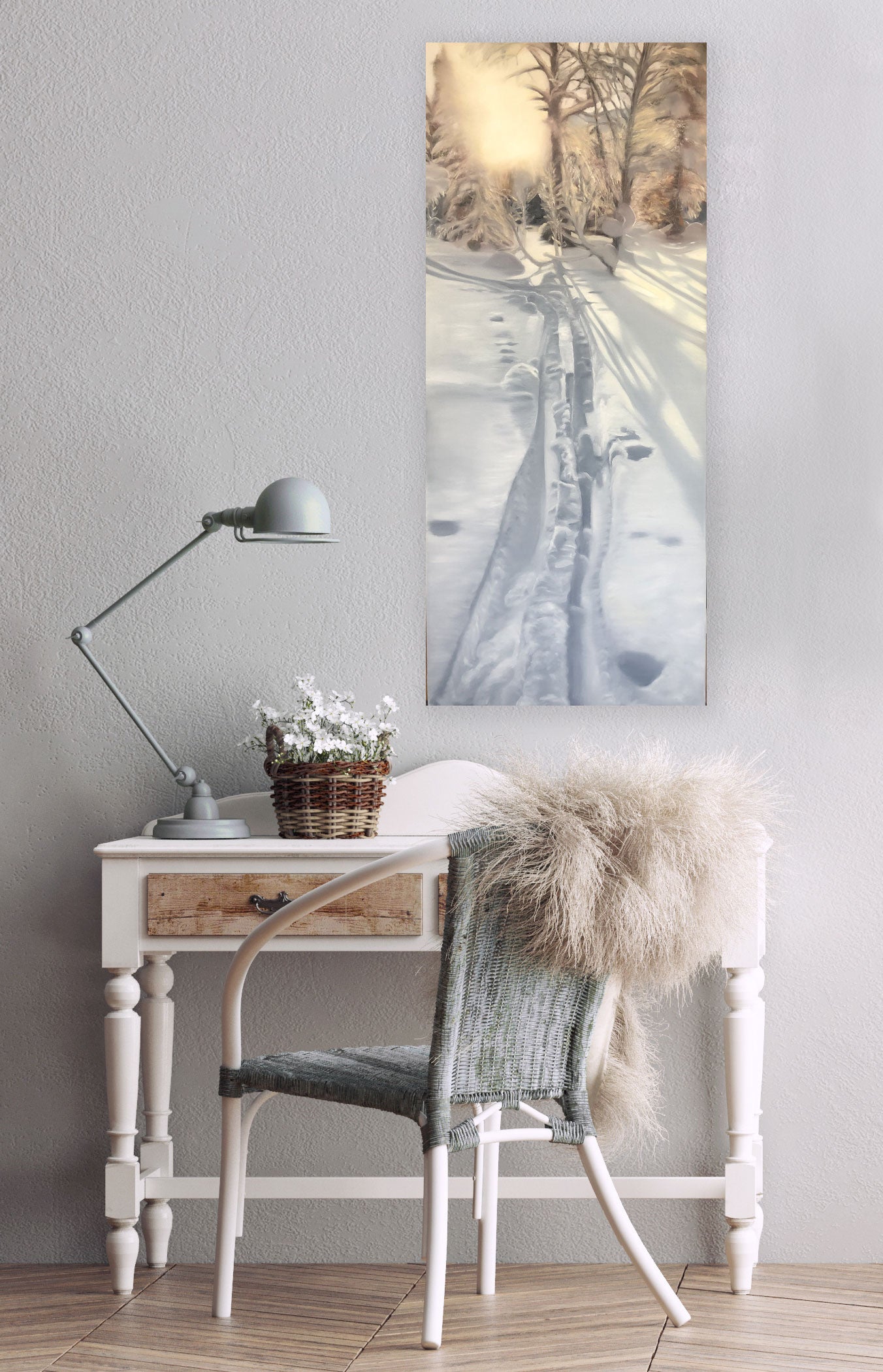 Målad med vattenbaserad oljefärg på fin kanvasduk i linne av italienska märket carvaggio. Monterad på kraftig kilram och färdig att hängas på väggen som den är om du vill.