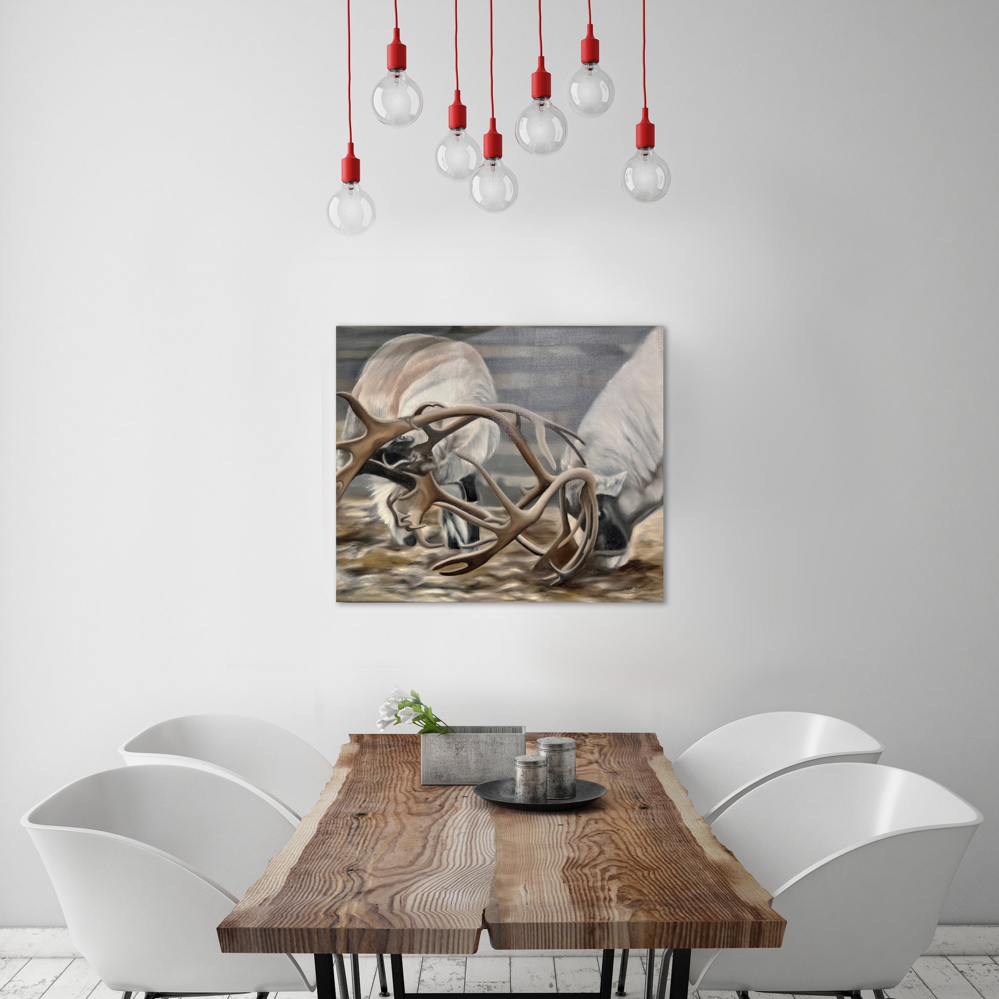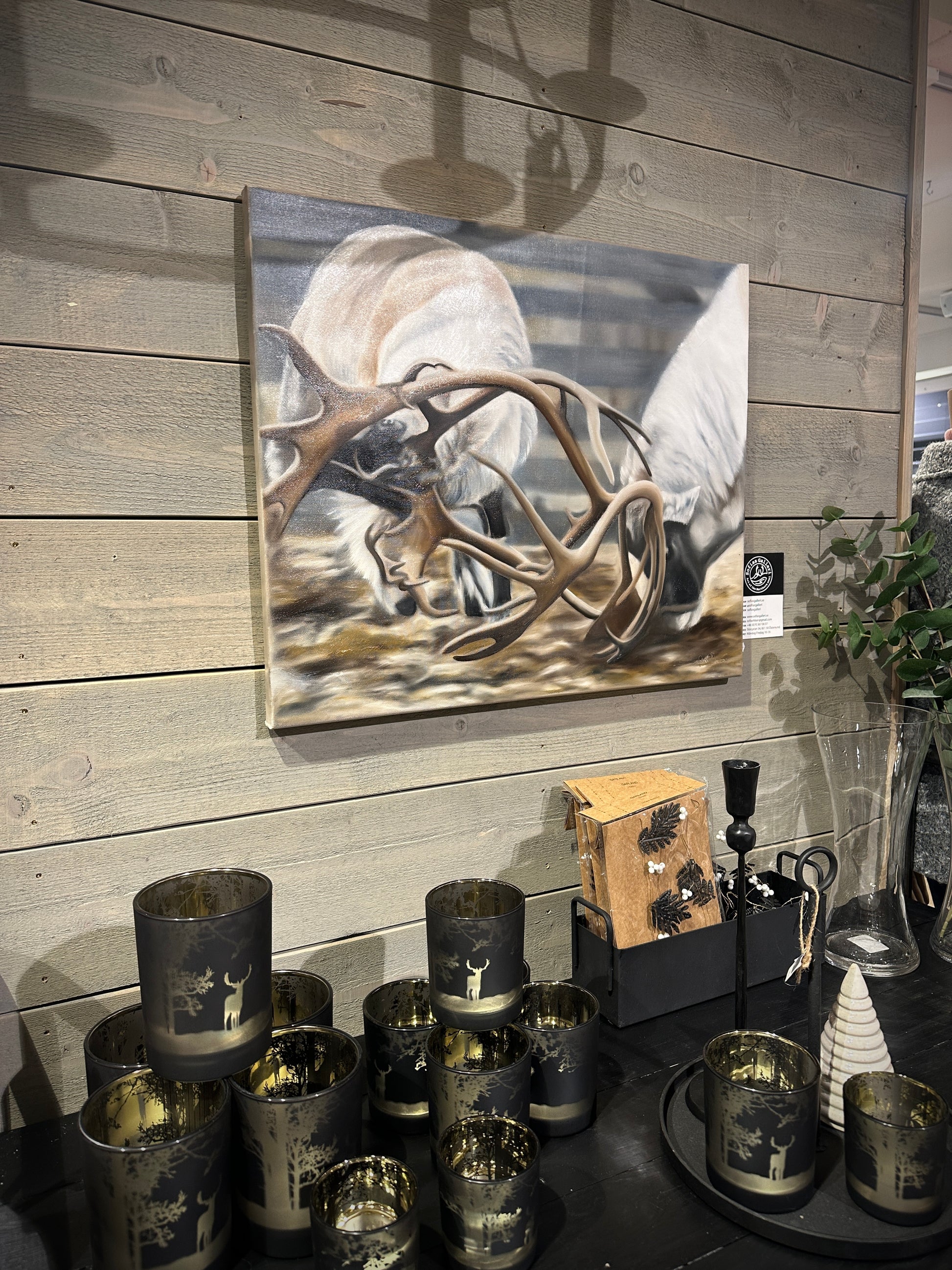 MĂ„lad med vattenbaserad oljefĂ€rg pĂ„ medelgrov kanvasduk. UppspĂ€nd pĂ„ kilram och fĂ€rdig att hĂ€ngas pĂ„ vĂ€ggen som den Ă€r om du vill.Â