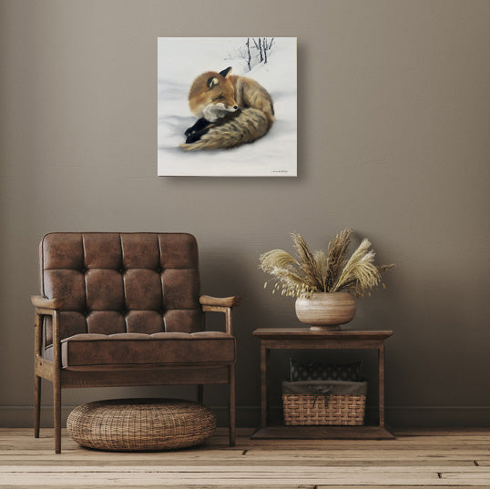 Målad med vattenbaserad oljefärg på medelgrov kanvasduk. Uppspänd på kilram och färdig att hängas på väggen som den är om du vill.